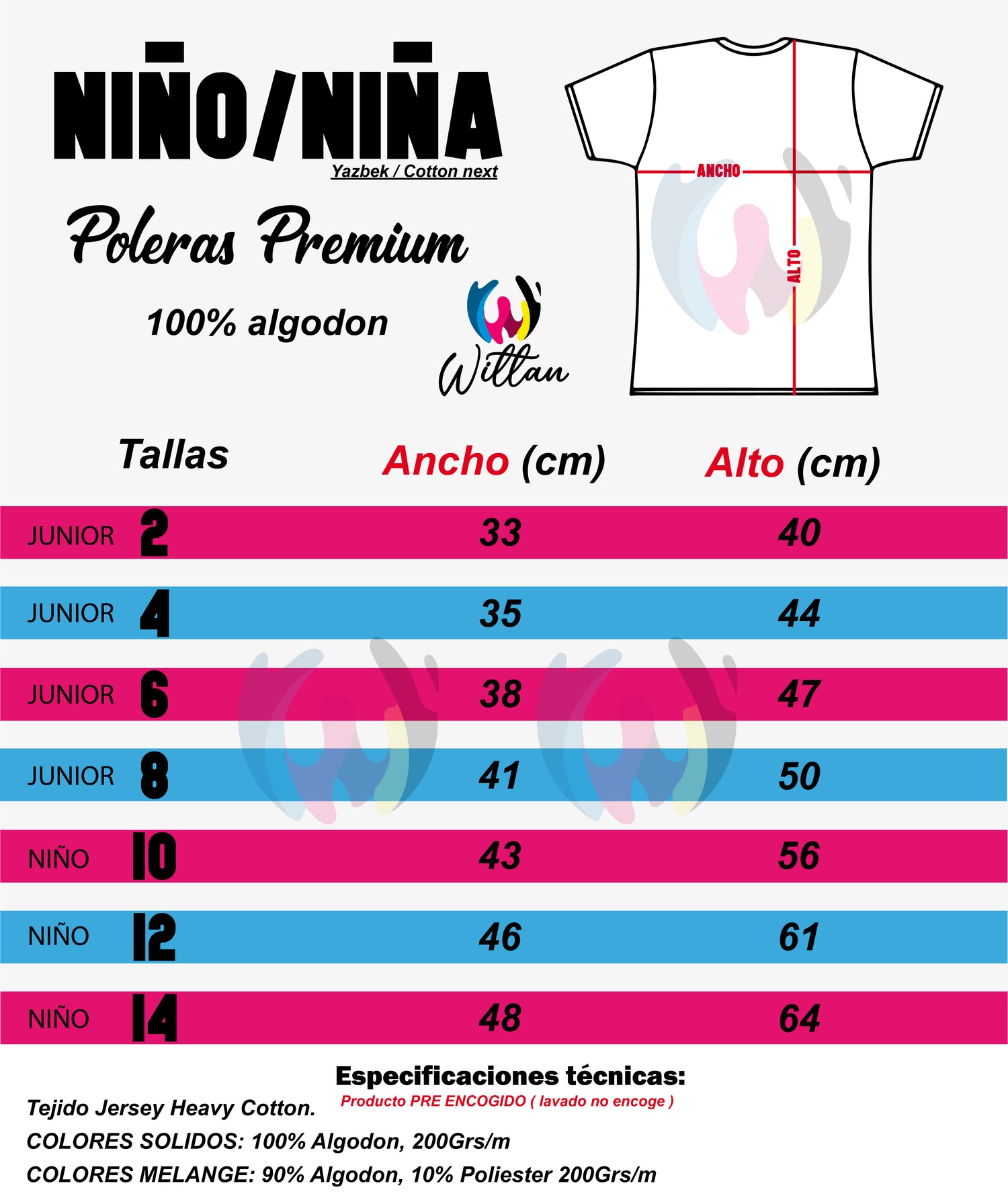 TALLAS PARA POLERAS DE NIÑO-NIÑA.