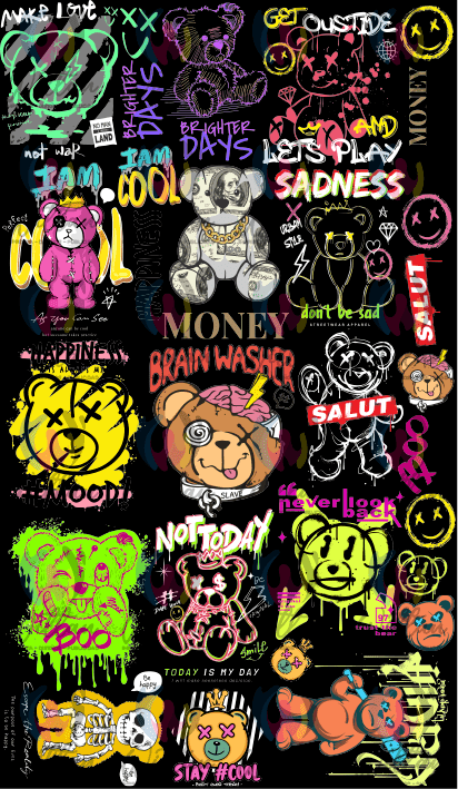 Paños DTF TEXTIL Prediseñados | Osos Urbano 04