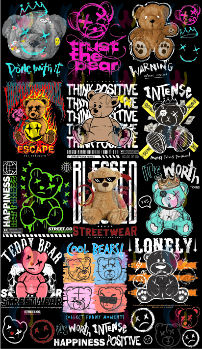 Paños DTF TEXTIL Prediseñados | Osos Urbano 06