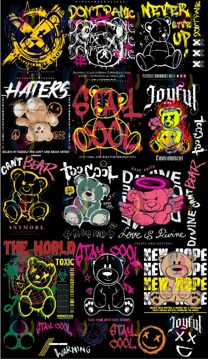 Paños DTF TEXTIL Prediseñados | Osos Urbano 07